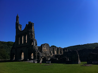 As we descended into the valley, the distant ruins on the far side nestled into the enfolding arms of Yorkshire ’s land. It was not a grand or awe inspiring sight, but it possessed a different kind of power. We knew it when we saw it, by the crumbling Norman arches of the north wall, that this is what we had come for. As I stepped off the coach, I too felt as though the land embraced me, in this once holy place.